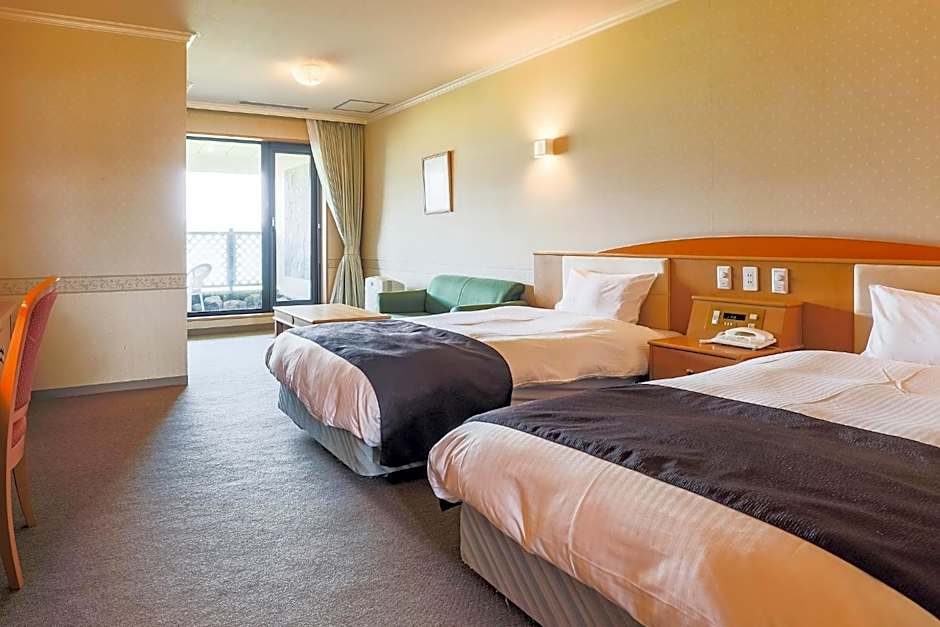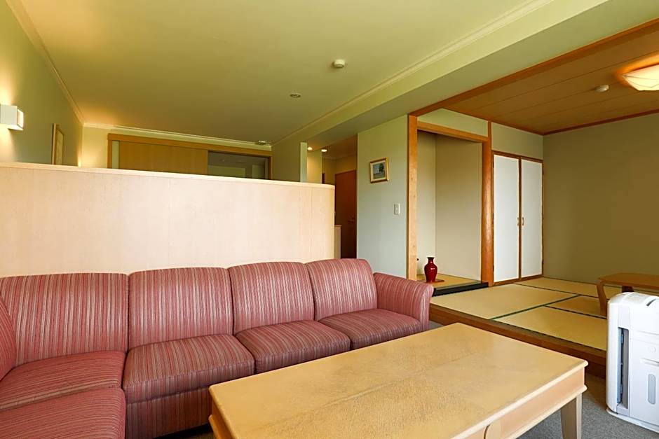 Features Western-style beds and a tatami (woven-straw) seating area.